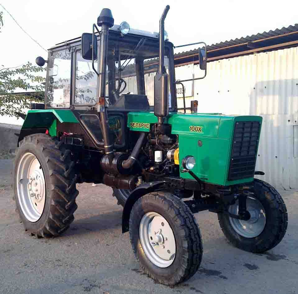 Кабина МТЗ-100 расположена над задним мостом машины. Двигатель же установлен на переднем брусе, а его надежная фиксация осуществляется с помощью опоры шарнирного типа. Кстати, там же расположен гидроусилитель руля и радиаторы системы смазки и охлаждения. Вообще, основными элементами трактора являются: