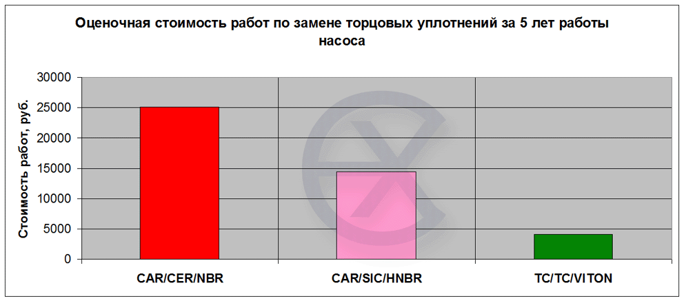 Обратной стороной является цена, к примеру, стоимость уплотнительного комплекса для вала диаметром 35-40 мм может достигать 50000 … 170000 рублей в зависимости от конструктивного исполнения и применяемых материалов. Цена ремонтного комплекта от 60% от общей стоимости уплотнительного комплекса в сборе.