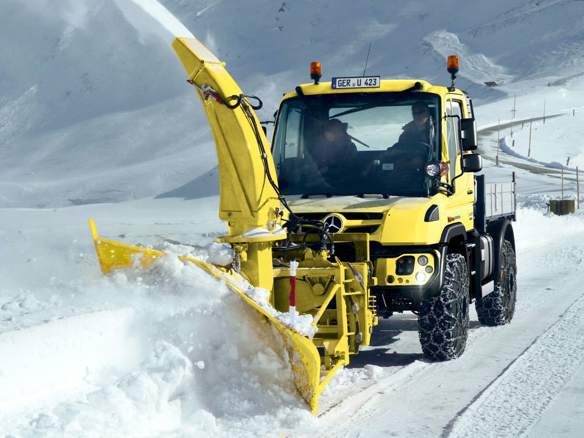 Различные многофункциональные дорожные машины и оборудование выпускают заводы Mercedes-Benz. Среди новинок – автономные 27 тонные снегоуборочные машины AAGM на шасси Arocs. Они оборудованы 8-метровым режущим отвалом впереди и щеткой сзади, могут управляться оператором.