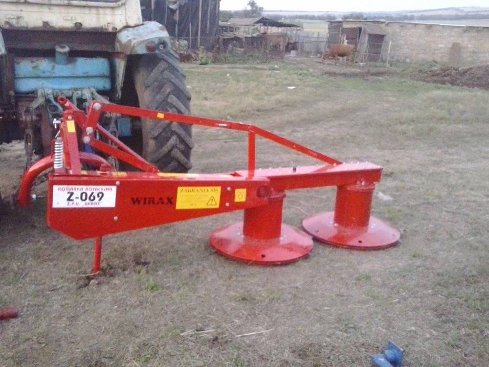 Косилка «Wirax» (польской сборки) крепиться путем навешивания на задние тяги трактора, которые входят в навесную систему. Выполняя покос элементы косилки укладывают скошенную траву в валок. Благодаря этому фермер не тратит дополнительное время для сбора скошенной травы, она уже удобно уложена для дальнейшей переработки. Дополнительным элементом защитный кожух, который входит в комплект оборудования. Благодаря инновационному подбору материалов для изготовления основных узлов косилки, оборудование имеет длительный эксплуатационный срок. Именно этот параметр очень ценен отечественными фермерами.