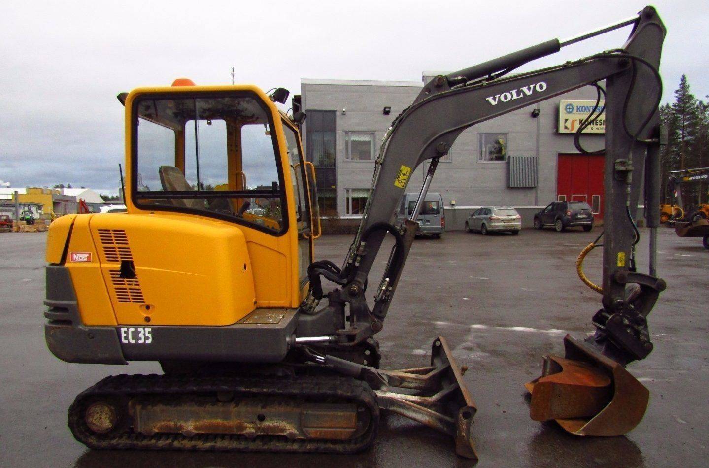 Мини-экскаватор EC 35 C – масса 3,4 т, глубина копания 3,6 м, сила мотора 36 л. с. Несмотря на относительно малую мощность, возможностей этой спецмашины хватает на вполне эффективную деятельность в условиях городского стеснённого пространства.