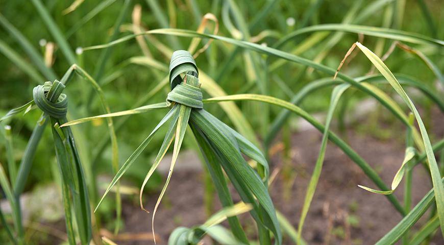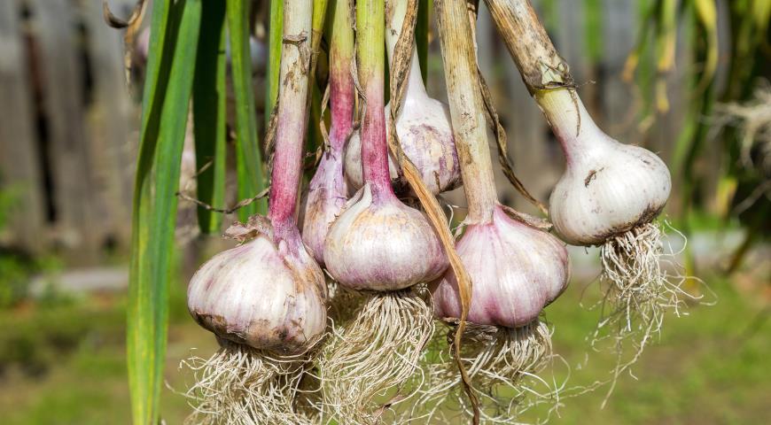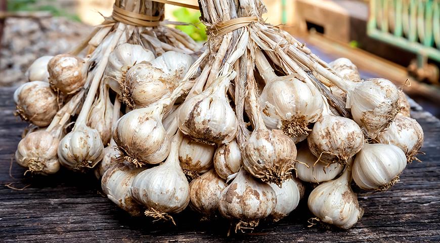 Интересно! Некоторые огородники предпочитают не обрезать стебли. Высушенный чеснок сплетается в косы, которые затем подвешивают в сухом, прохладном месте.
