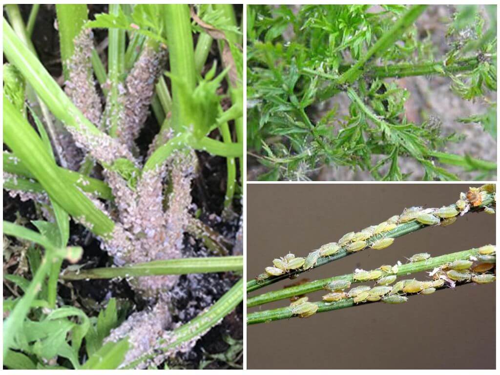Вовремя проведенные мероприятия по уничтожению тлей избавят морковку от вредителя и отложенных яиц. На поражение морковных сеянцев вредными насекомыми указывают признаки: