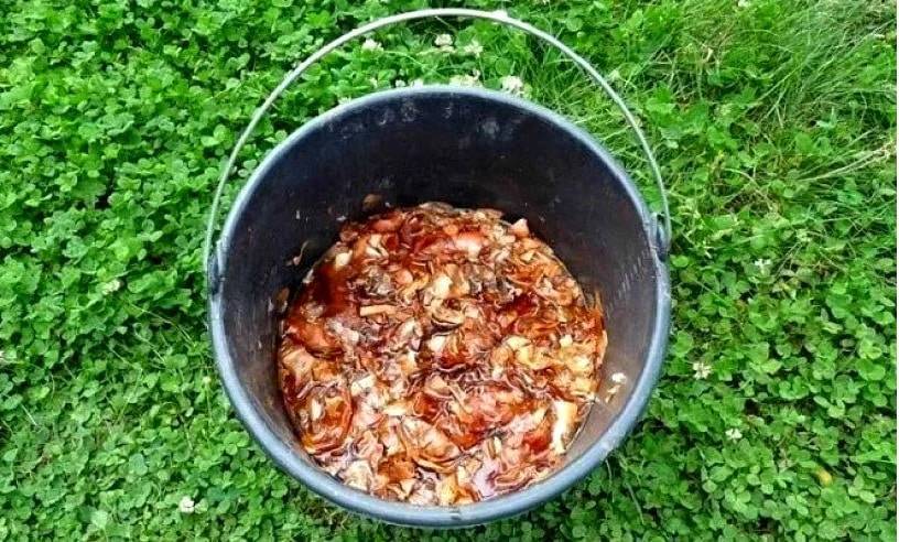 Наполнить луковой шелухой половину ведра и залить доверху нагретой до +65°С водой. Настаивать сутки, разбавить вдвое. Использовать раствор сразу после процеживания.