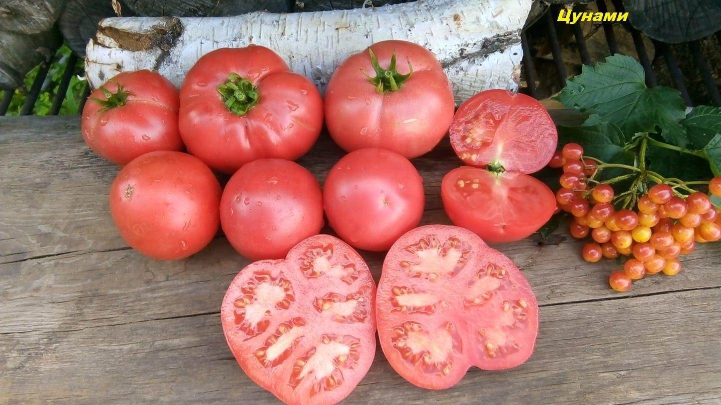 Спелые плоды имеют розовый цвет, а форма у них округлая. Масса одного плода в среднем бывает по 90 г — 110 г. Семенных камер у томата может быть 2 — 3 штуки.