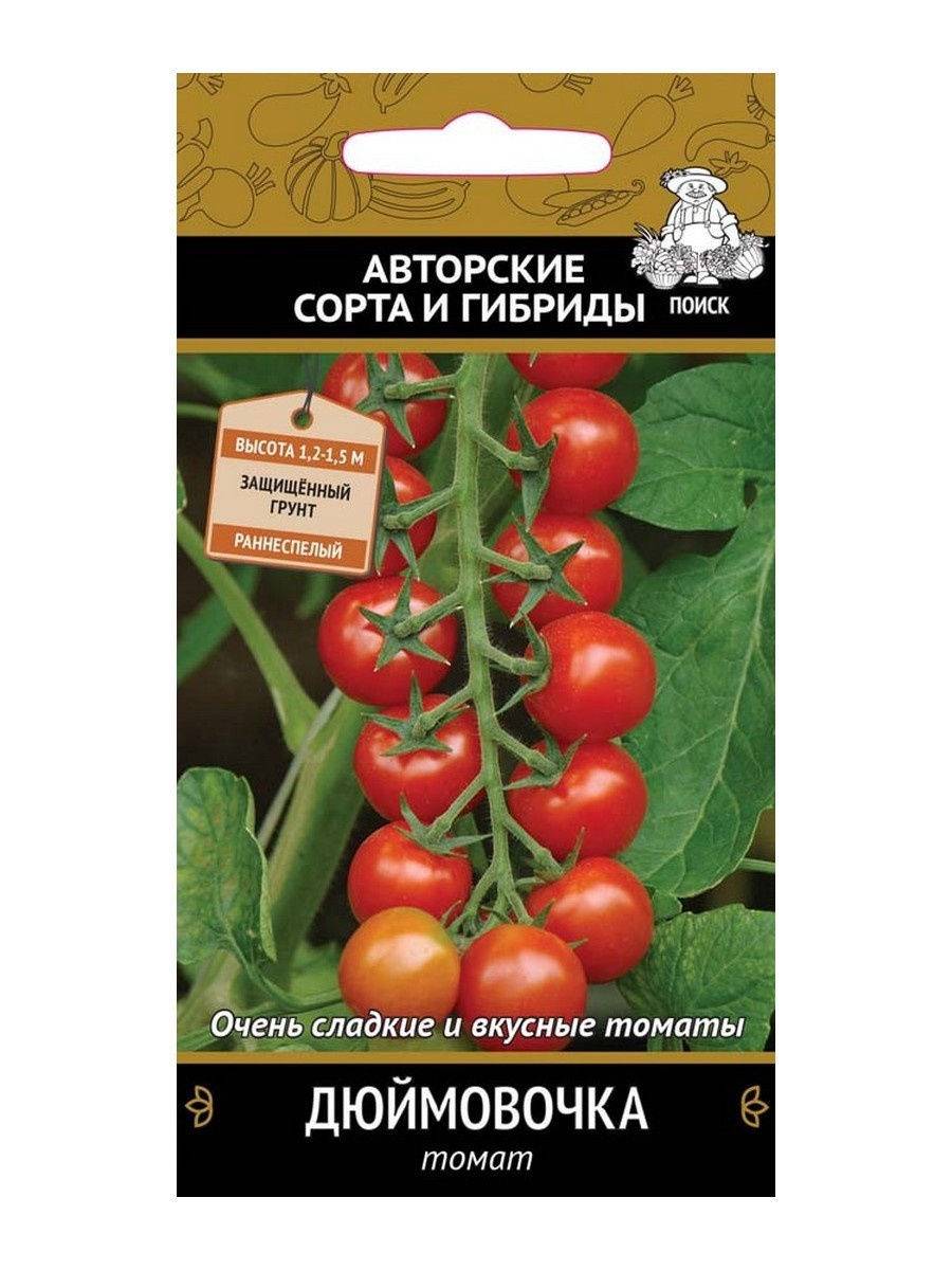 - Сорт томатов Дюймовочка является раннеспелой разновидностью, создан для выращивания в закрытом грунте. Растение вырастает до 1,5-1,6 м.
