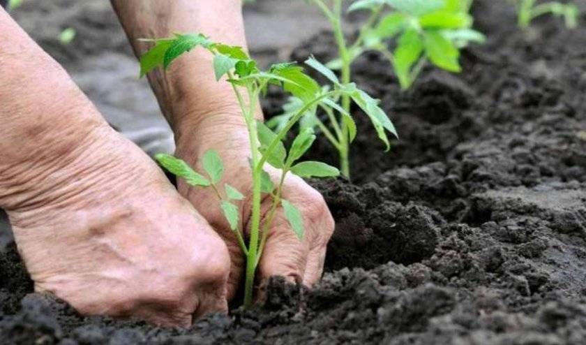 Перед высадкой в грунт рассаду закаливают. Томаты высаживают, когда грунт прогревается до 15 С. Рекомендуют добавить в лунки воды и удобрений, чтобы корень быстрее расправился, начал прорастать.