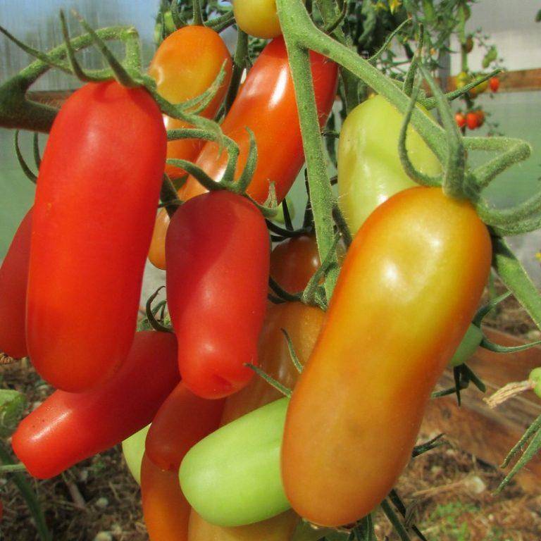 Форма у помидоров, как уже описывалось выше, вытянутая, продолговатая. Они похожи на небольшие бутылочки. Некоторые огородники называют такие помидоры пальчиковыми, другие — сосульками. Действительно, часто у помидоров этого сорта на конце образуется еще небольшой носик. Но, поскольку у исходного гибрида на этом месте находится, наоборот, небольшое углубление, то часть растений могут выдавать еще и такой формы плоды, то есть без носика. Это может быть связано с тем, что сорт еще окончательно не стабилизировался.