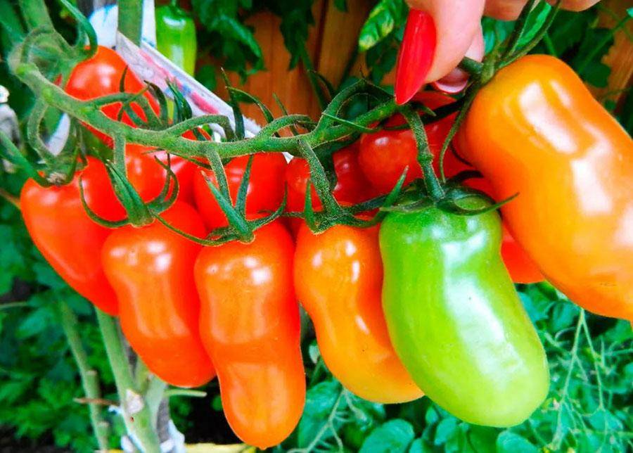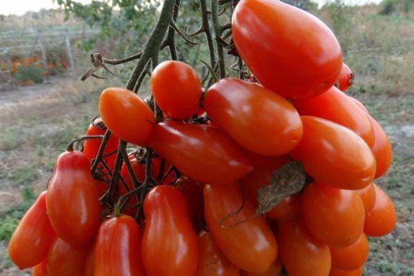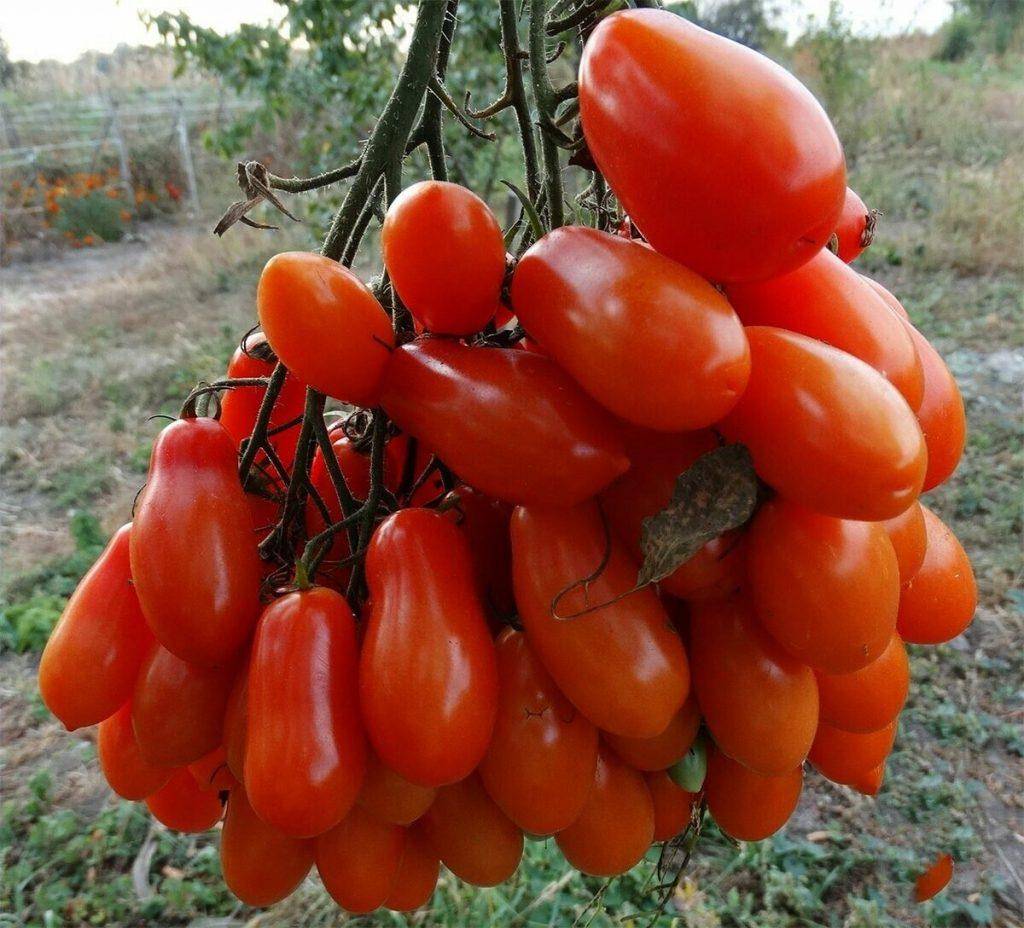 Плоды пальчиковой формы с небольшим носиком, в стадии зрелости красного цвета, весом 40-70 грамм, отличного вкуса. Собраны в большие, красивые кисти. Эти помидоры хороши для свежего потребления, консервирования, вяления.