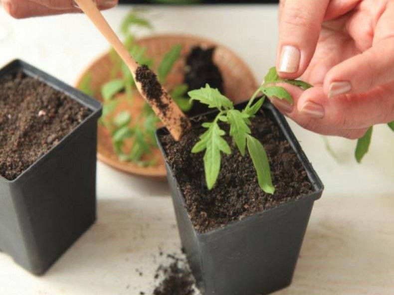 При возделывании рассады в одном контейнере, ее нужно распикировать по отдельным горшочкам по мере формирования двух настоящих листьев. Чтобы меньше травмировать корневую систему, переваливают сеянцы вместе с грунтовым комом.