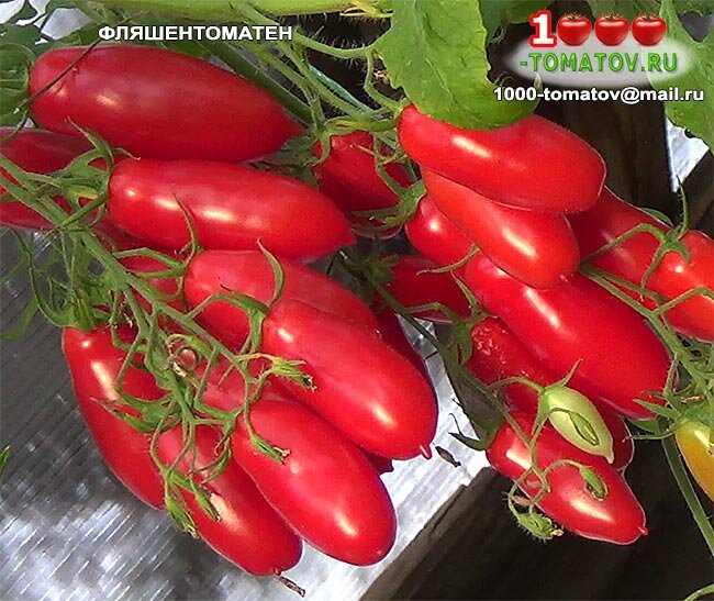 Краткая характеристика сорта Фляшентоматен – имеет высокий уровень урожайности, достаточно быстро начинает давать плоды, может быть посажен, как в теплице, так и в открытом грунте.