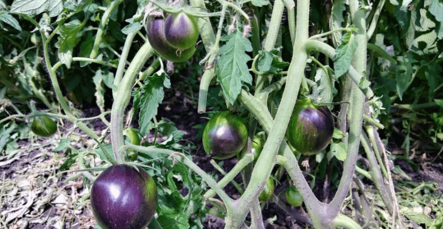 Полноценный куст занимает площадь около 1 кв. м – растение идет не вверх, а разбрасывает боковые побеги по земле. Дает помидоры довольно крупные.
