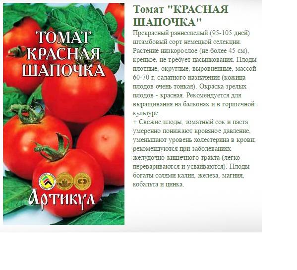 «Красная шапочка» порадует вас вкусным, богатым урожаем сахаристых помидоров. Да, для консервирования в виде целых плодов они не подходят, зато из них получаются отличные соусы, салаты благодаря сладковатой мякоти.