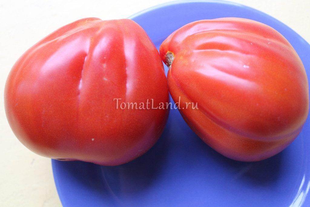 - Описание плода: помидор имеет форму сплюснутого с боков шара. Вес его достигает 0,2-0,25 кг. На ее боковой поверхности можно заметить небольшие ребра.