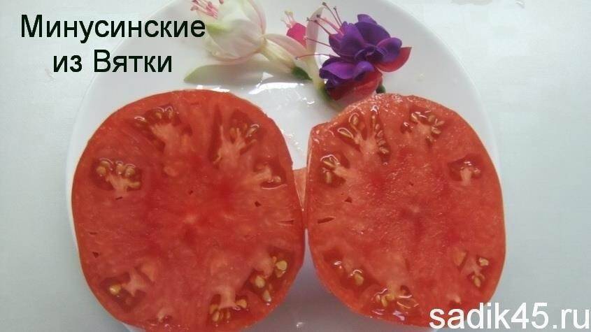 Описание и характеристика томата Минусинские из Вятки, отзывы, фото Среднеранний, среднерослый, крупноплодный семейный сорт томатов из Минусинска. Куст индетерминантного типа, мощный, высотой до 1, 7 метра. Требуется подвязка к опоре и пасынкование. Наилучшие результаты получились при формировании …