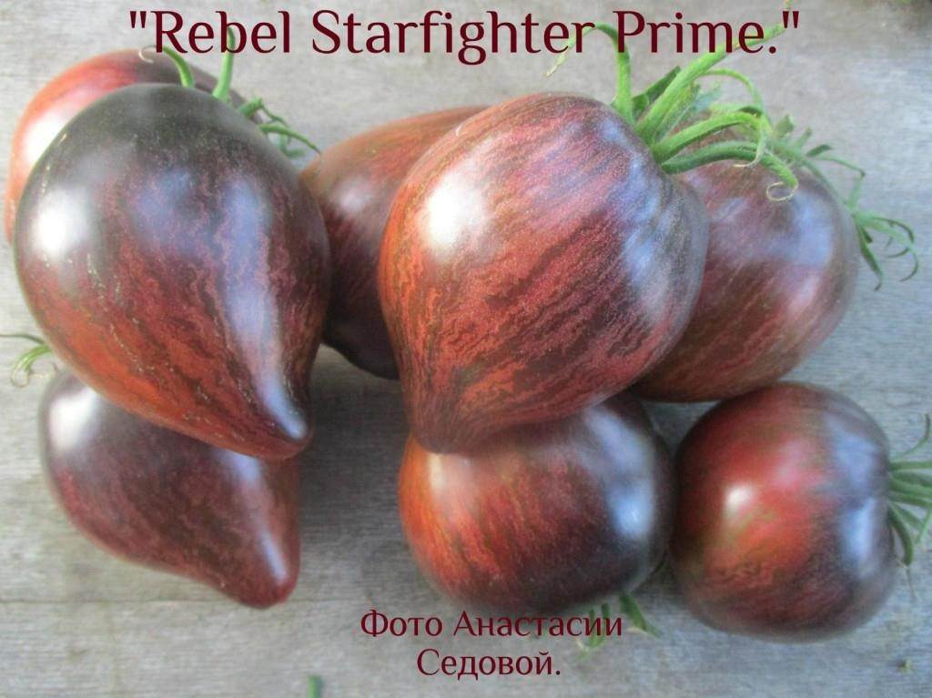 Оригинальное название сорта – Rebel Starfighter Prime. Автор томата Расс Кроу. Были скрещены сорта Xanadu Picasso и RNK GWR Heart. Среднеспелый, высокорослый томат с плодами интересной формы и экзотической окраски. В средней полосе рекомендуем выращивать его в теплице. Растение индетерминантного т…