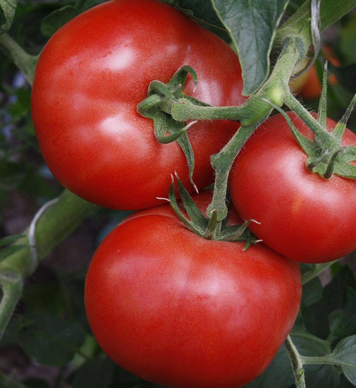 Помидоры округлой формы с небольшим «носиком», красные, весом до 140 граммов. Томат очень дружно отдает урожай, устойчив к ряду болезней, в том числе, к опасной фитофторе.