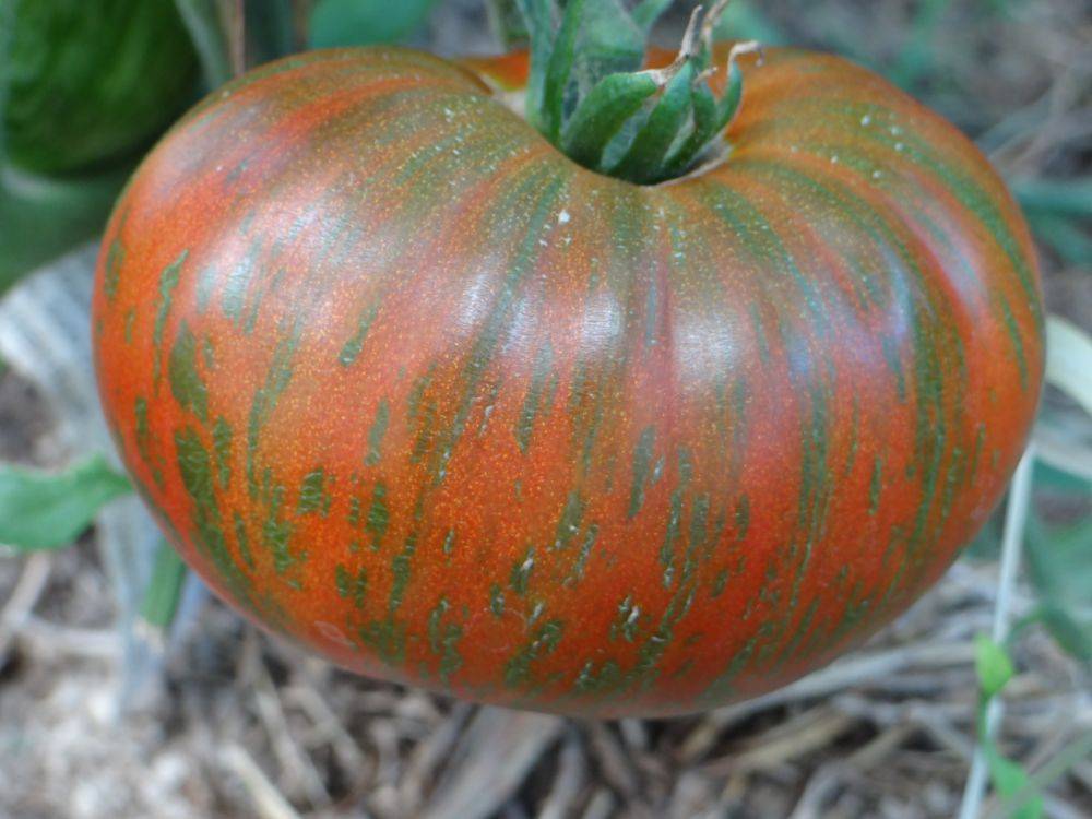 Плоды массивные. Средний вес одного помидора составляет 0,6-0,8 кг. Некоторые селекционеры и их партнеры томат Полосатый шоколад получали весом более 1 кг.