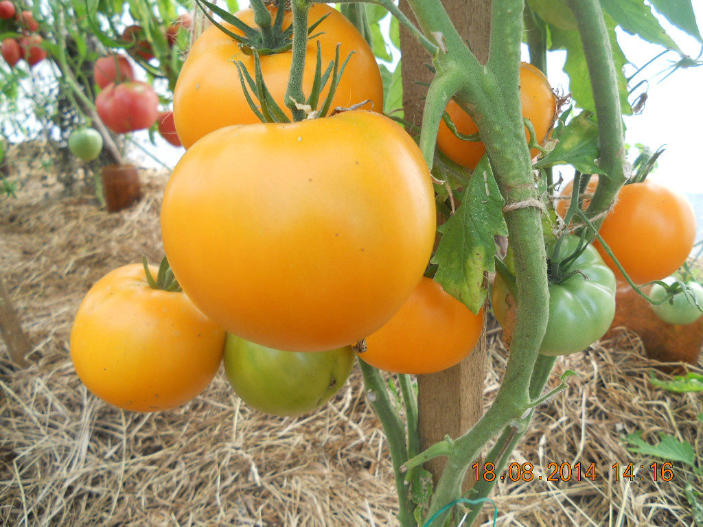 - Грейпфрут. Это желтый крупный сорт. Один помидор может весить 600 г. При этом высота растения доходит до 2 м. Требует подвязки и формирования. Не подходит для холодных регионов.