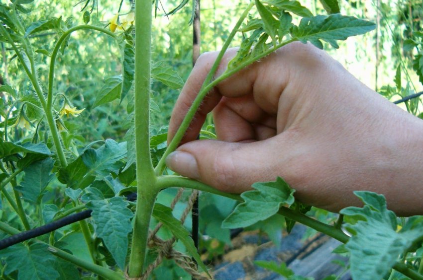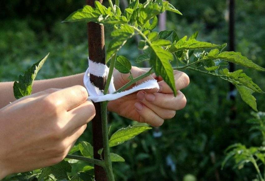 Культура нуждается в обязательной подвязке, так как ни стебель, ни плодоносные ветви не выдержат тяжесть спелых плодов. При пересадке рядом с каждым растением устанавливают деревянную или металлическую опору, к которой сразу же фиксируют стебель. Закрепленный стебель растет ровным и крепким, не страдая от порывов ветра и осадков.