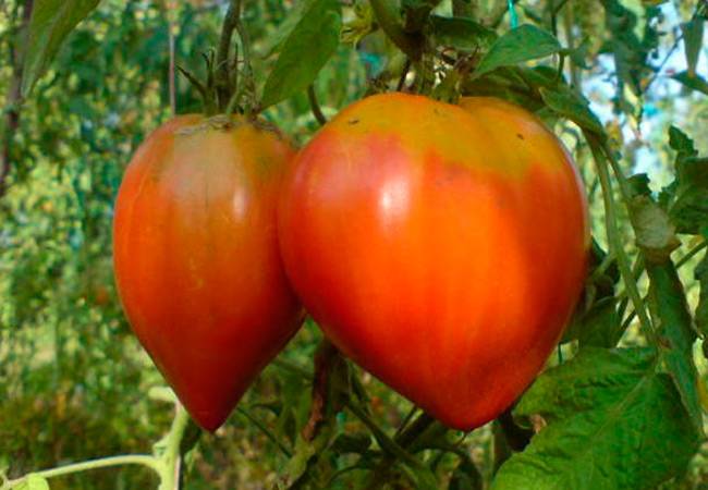 Подходит как для открытого грунта, так и для теплицы. В последнем случае кусты достигают полутора метров. Формируют их в один или два стебля. Форма овощей – сердцевидная. Мякоть у них очень сочная и вкусная. Идеальны для салатов, соусов и соков.
