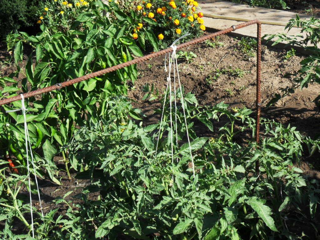 Кроме подвязки стеблей рекомендуется ставить подпорки под плоды, так как они вырастают достаточно тяжелыми.