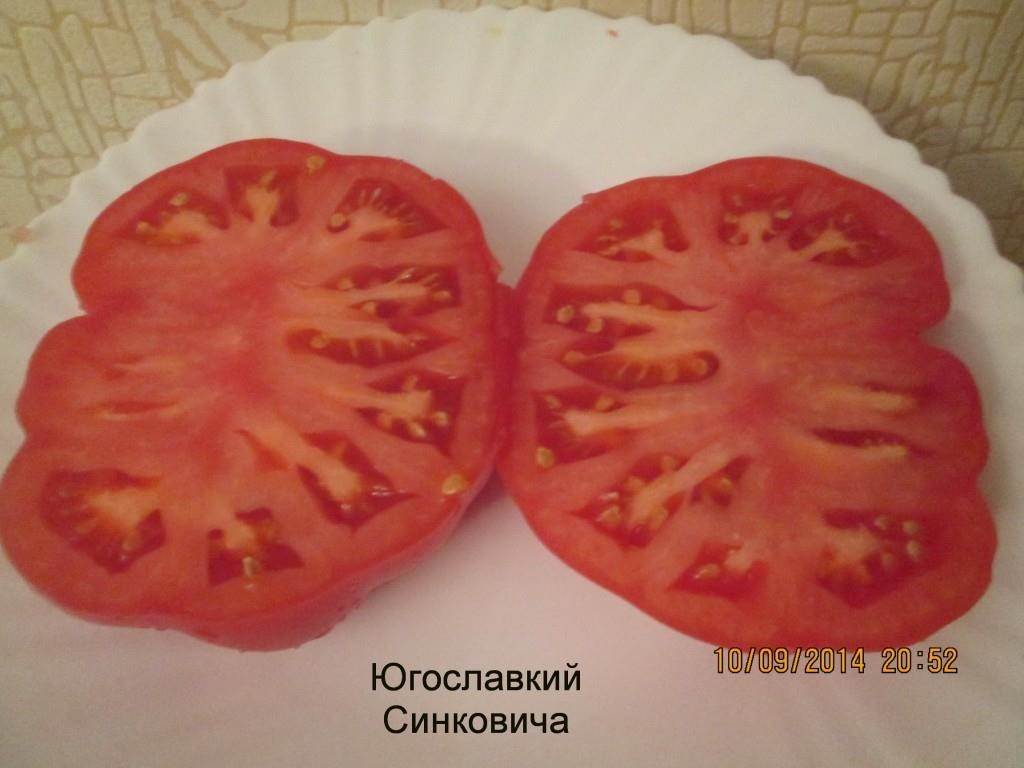 Сочная мякоть плодов желто-оранжевая, мясистая, плотная. Помидоры в основном состоят из мякоти, небольшие, узкие семенные камеры расположены ближе к стенкам.