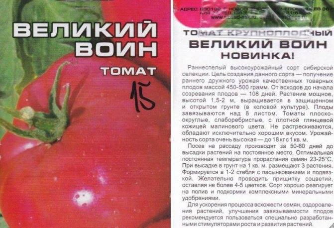 Описание и агротехника выращивания томата Великий Воин