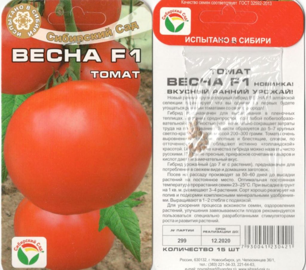 Выращивание томатов Весна требует соблюдения обычных агротехнических приемов: