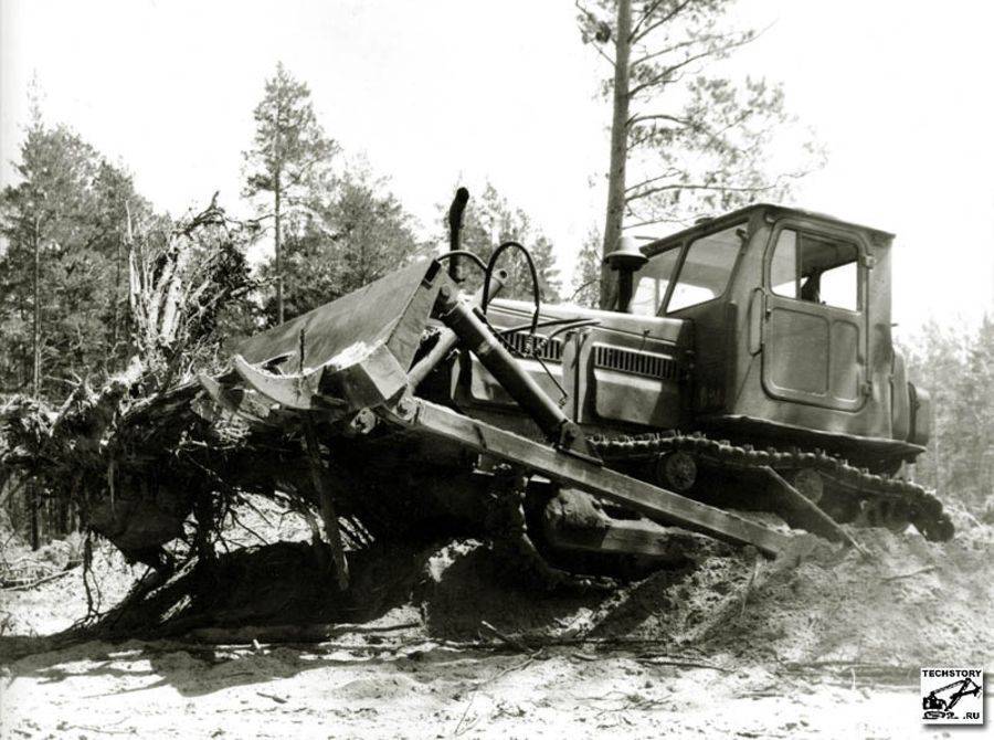 - ТТ-4М-04. Следующий вариант трактора ТТ 4М. Главным отличием стало наличие толкателя, контролируемого гидроприводом. Установка этого устройства упростила процесс окучивания готовых пачек, выравнивания комли и подготовки участка для загрузки / погрузки. Машина отличается небольшим давлением на грунт 39 кПа. Толкатель с гидроприводом весит 600 кг, а вся машина с навесной аппаратурой — 14,945 т. Предельная грузоподъемность находится на уровне 113,5 кН. Габаритные размеры толкателя — 2,65х0,9 м, а длина трактора — 7,03 м.
