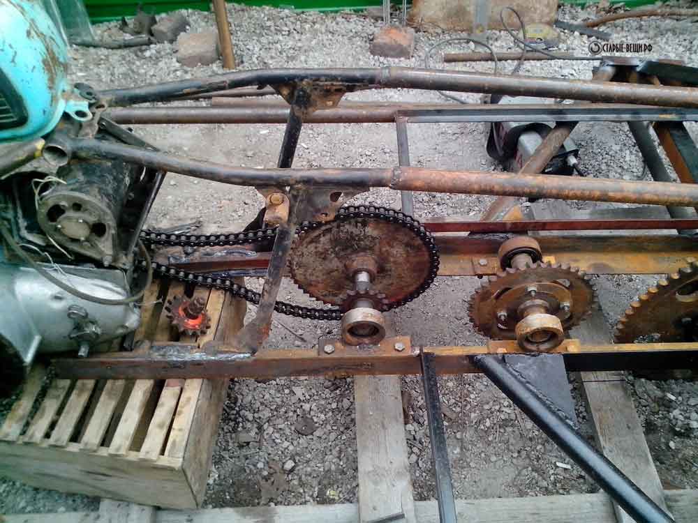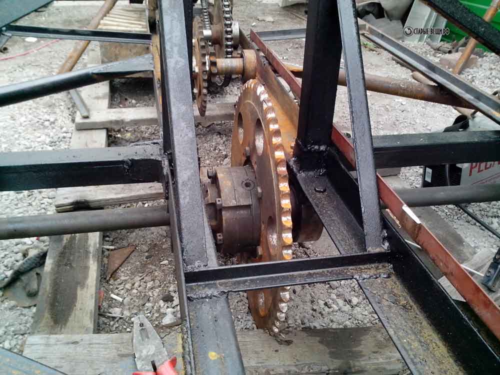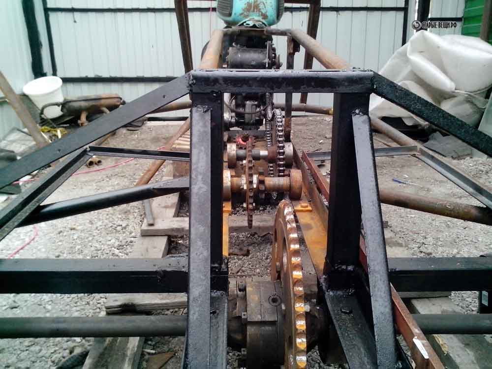 Делаем жесткий каркас болотохода и устанавливаем всю трансмиссию.
