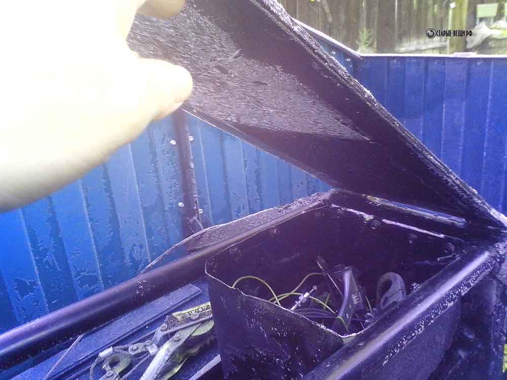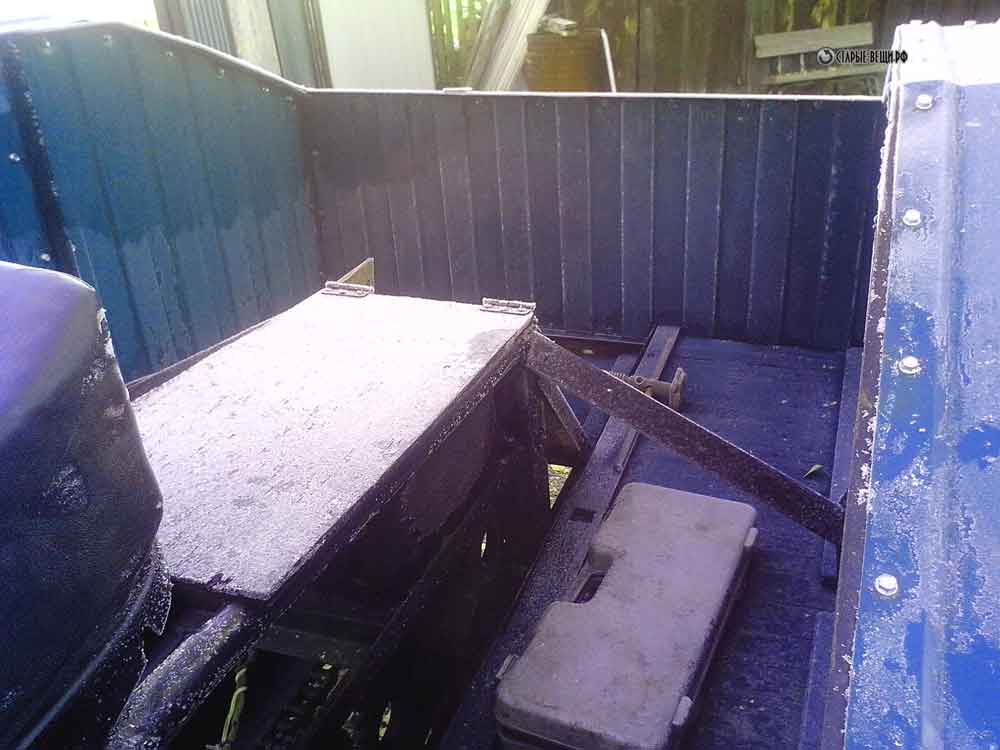 Ну и между задними крыльями мастерим короб в котором будем возить вещи и промыслы. За сидением сзади сделали ящик под инструменты.