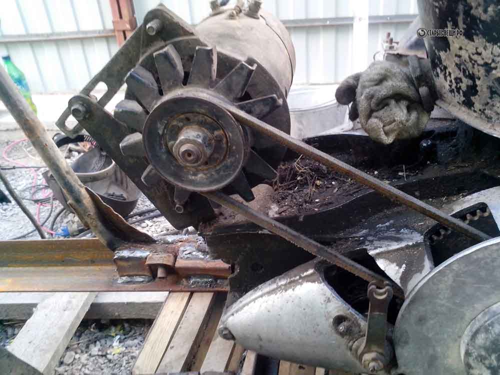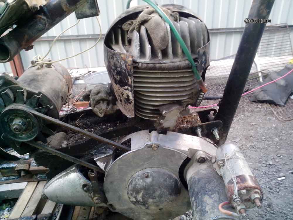 Как видите мы и двигатель уже начали устанавливать. Двигатель как я уже и писал от инвалидки. Он хорош тем, что у него принудительное охлаждение и электростартер.