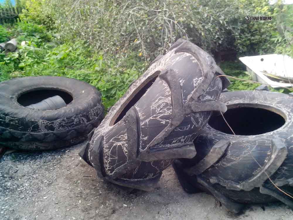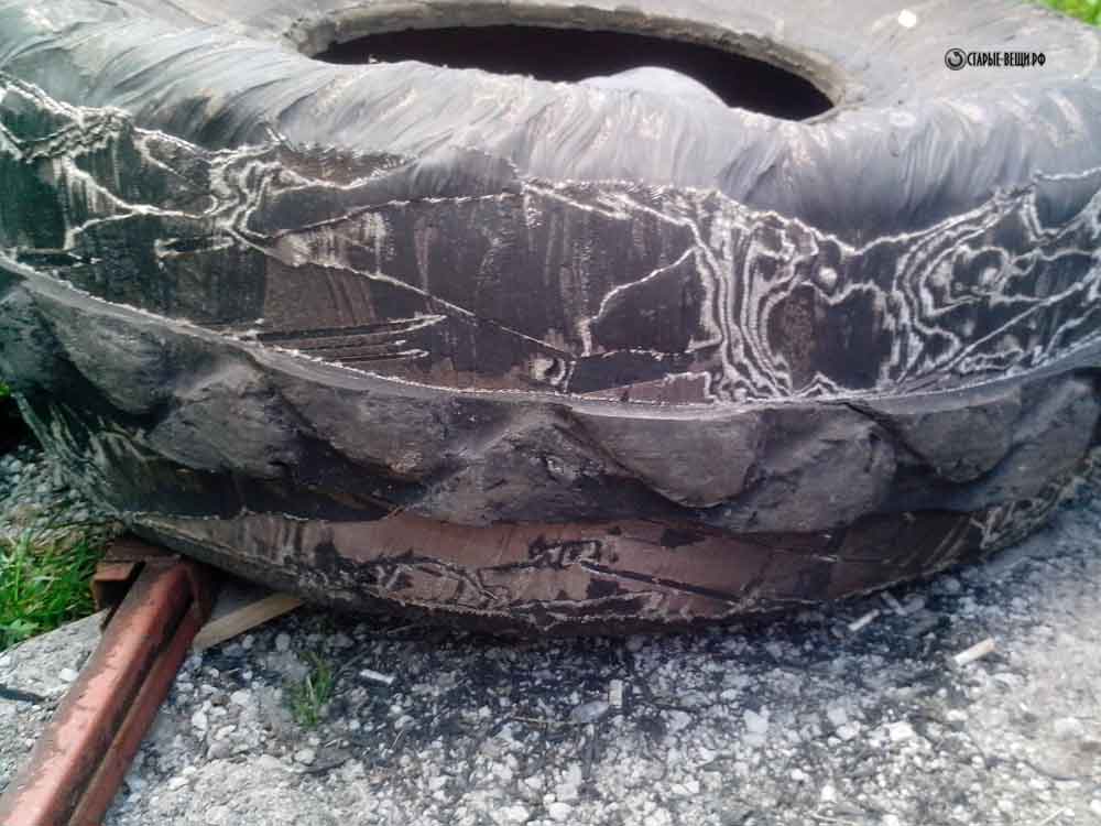- используя строительный нож, необходимо сделать надрезы в местах, где будет сниматься верхний слой шины. Устранить верхний слой, оставив только места, где будет просматриваться рисунок. Для устранения верхнего слоя можно использовать лебедку;