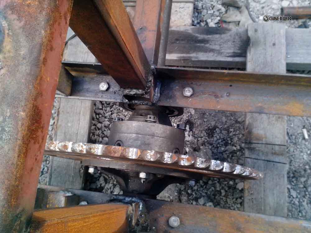 Что бы понизить скорость и усилить тягу вездехода делаем двойное цепное понижение.