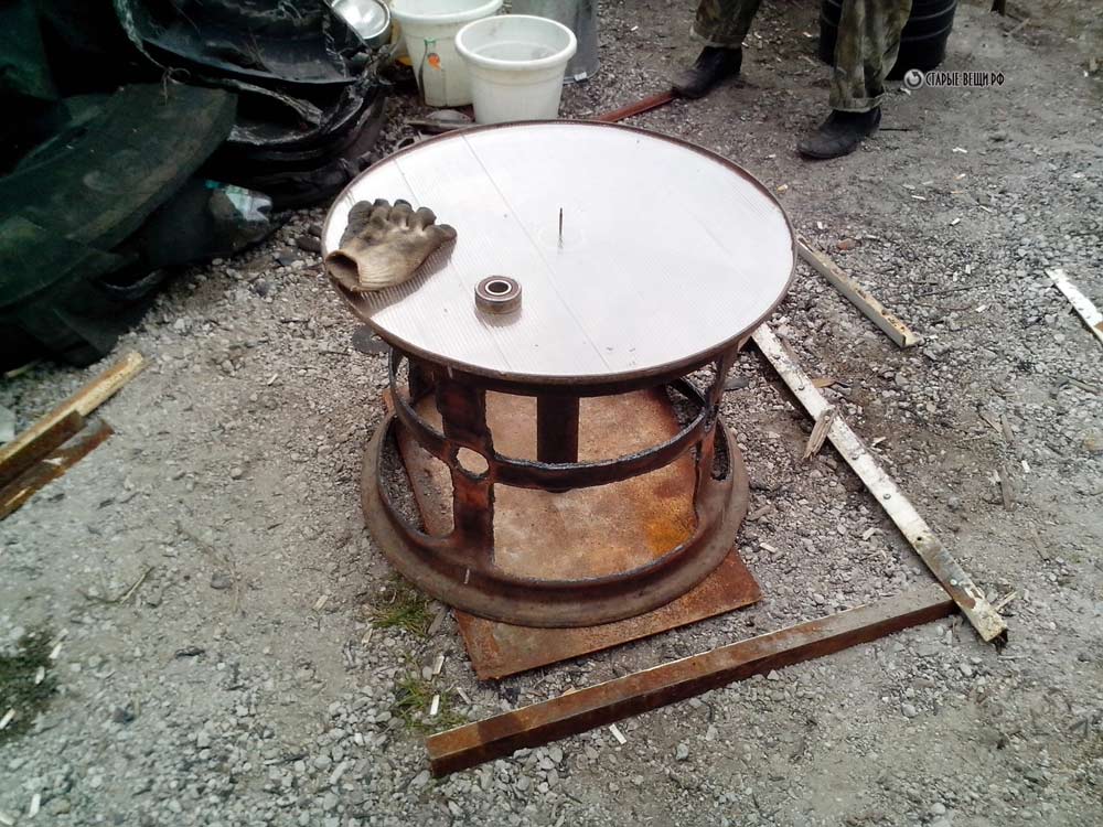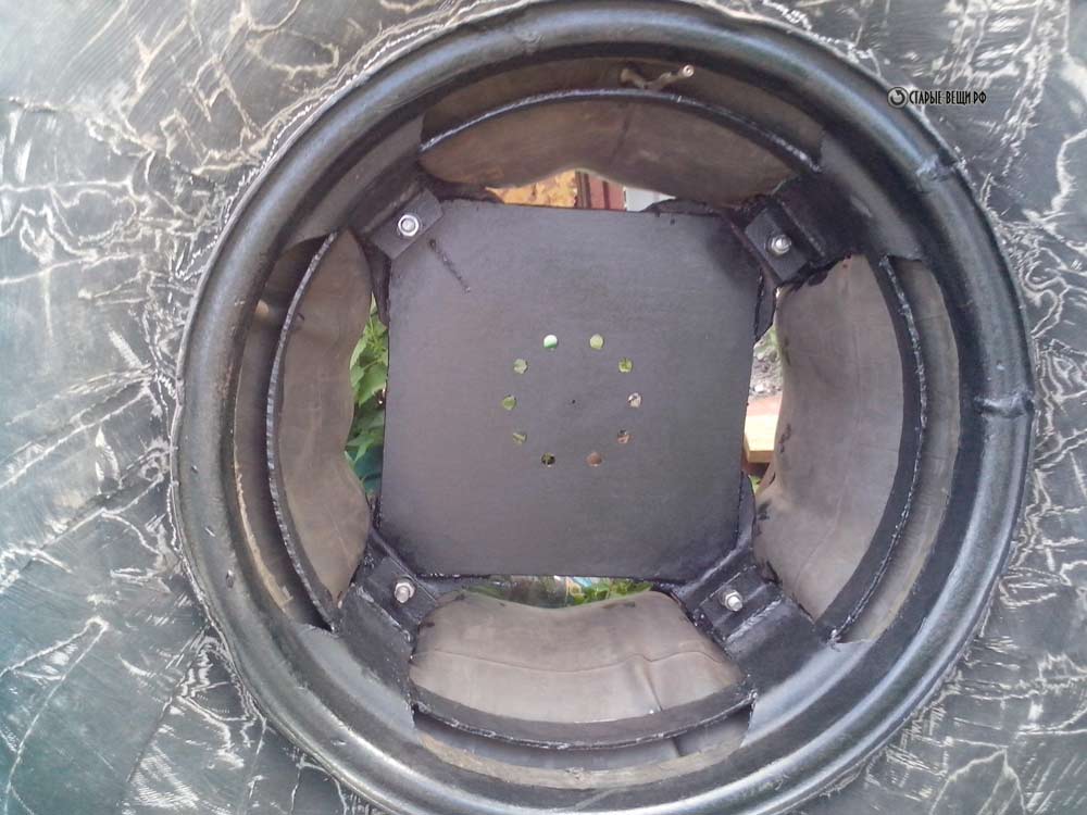 Облегчаем и диски для колес болотохода.Сделаем их разъемные, что бы покрышку не бортовать. Для этого в них вырезаем окна. Собираем колесо.