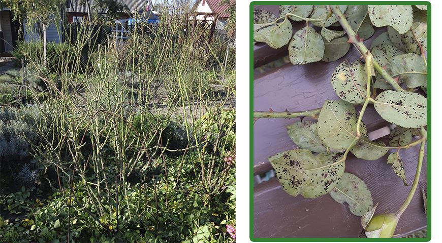 1. Работы по осенней обрезке роз. 2. Осеннее проявление ржавчины.