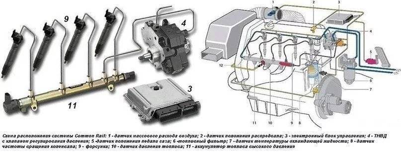 Основное отличие такой системы от «классической» заключается в наличии общей топливной рампы (аккумулятора давления), в которой во время работы двигателя создается очень высокое давление.
