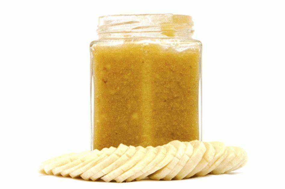 - Бананы очистить, порезать произвольными кусочками и растолочь в пюре