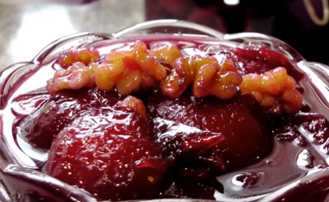 Невероятно красиво смотрится это лакомство в вазочке на столе. Украсит любое чаепитие! Фрукты с орехами в одном десерте — это аппетитное и вкусное лакомство. Когда я пью чай с таким вареньем, просто не могу оторваться…