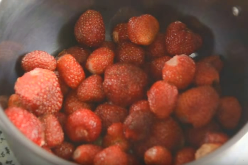 - Чистим и перебираем клубнику: открываем плодоножки, выбрасываем подозрительную ягоду.