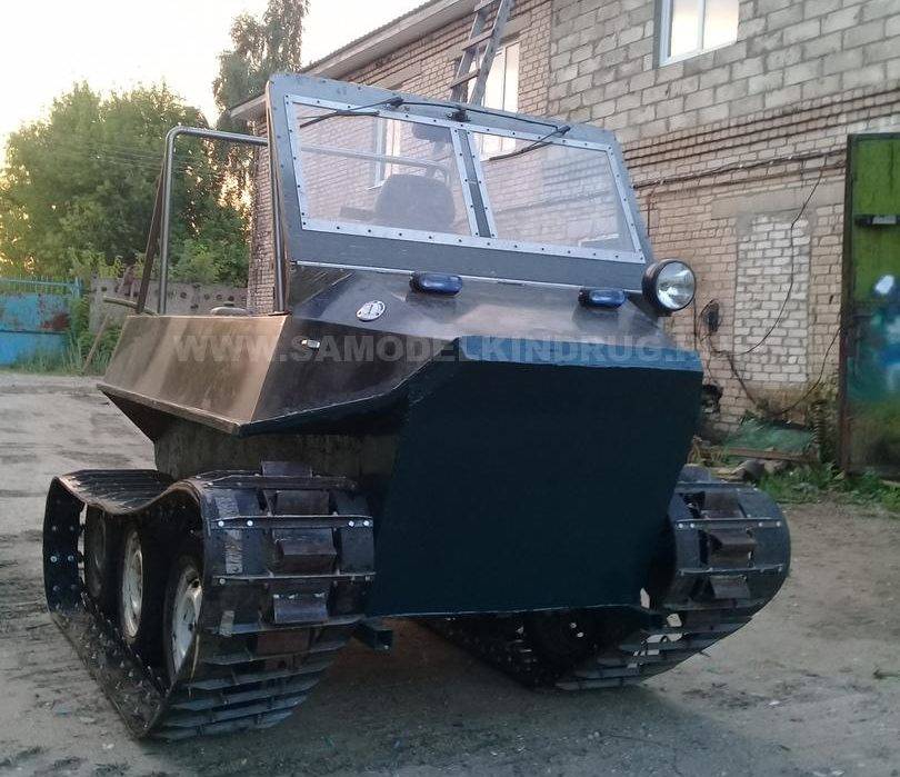 Уважаемые посетители сайта “Самоделкин друг” сегодня мы с вами рассмотрим гусеничный вездеход легкого класса с двигателем “Lifan” 15 л/с. Пошаговые фото сборки прилагаются. Данный вездеход собран Александром Майбуровым из Республики Коми г. Сыктывкар, машина носит название “Яг-Морт” что в переводе с языка жителей Коми означает “Лесной человек”