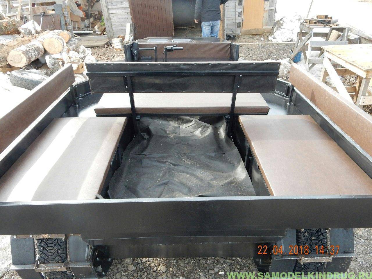 Начало строительства очередного вездехода караката. Конструкция «переломка», тележки сварены из профильной трубы, размеры профиля 25*40*1.5мм, 25*40*2мм, 25*25*1.5мм. Обе полурамы планируются водонепроницаемые как лодка. Колеса пневматические Бел-79. Двигатель ИЖ планета от инвалидки СЗД. Коробка, мосты и раздатка Нивские. Каракат делается для передвижения 1-2 человека по труднопроходимой, болотистой и другой местности, с небольшим количеством поклажи.