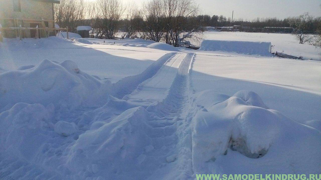 Объясню на примере. В самом первом видео по постройке мотособаки на деревянных склизах я говорил, что выбор 380-й гусеницы был обусловлен преимущественно плотным снежным покровом в данной местности. И, как показала практика, выбор этот верный. Буксировщик едет почти везде, спокойно может тянуть за собой до полутонны груза. Больше от него ничего и не требуется. Переплачивать за 500-ю гусеницу и мотор от 9 лошадей именно в данных условиях, на мой взгляд, глупо. И люди это понимают, почти все буксировщики в округе именно на 380-й гусенице.