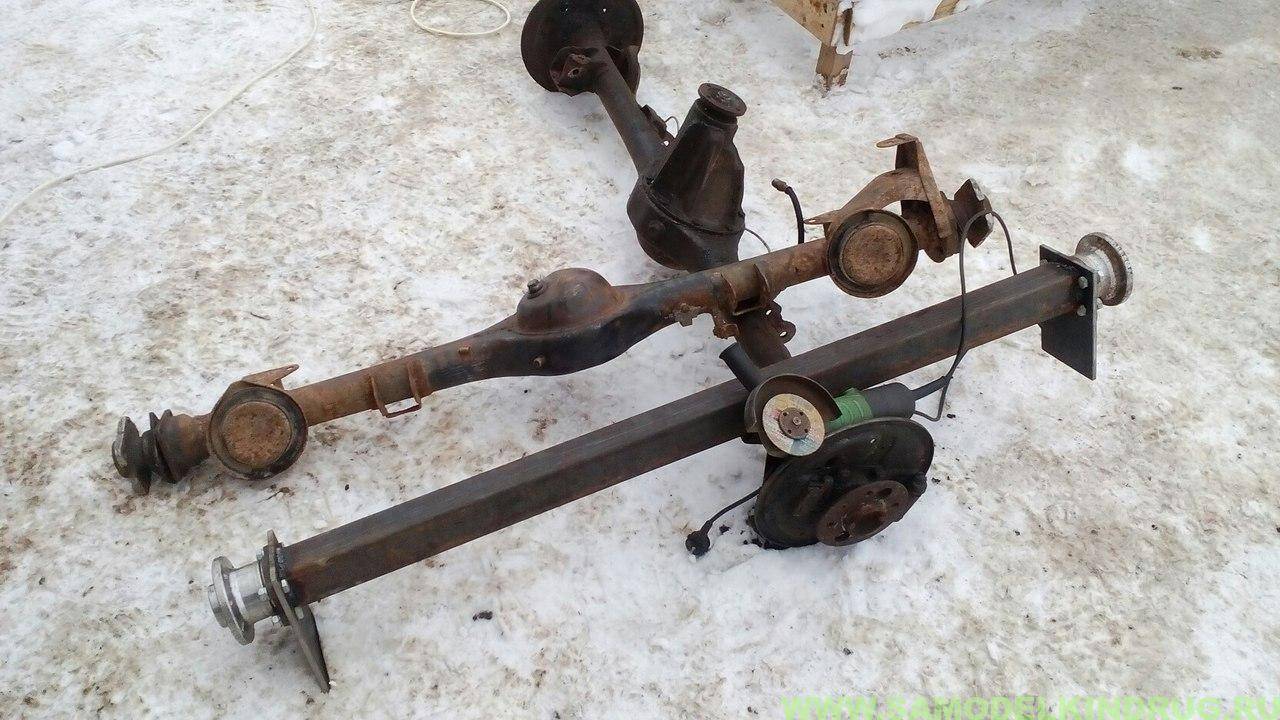 Процесс монтажа коробки, раздатки, и мостов. Двигатель пока установлен от мотороллера Муравей, но потом будет заменен на СЗД.