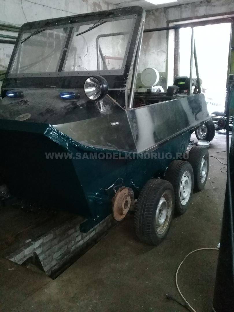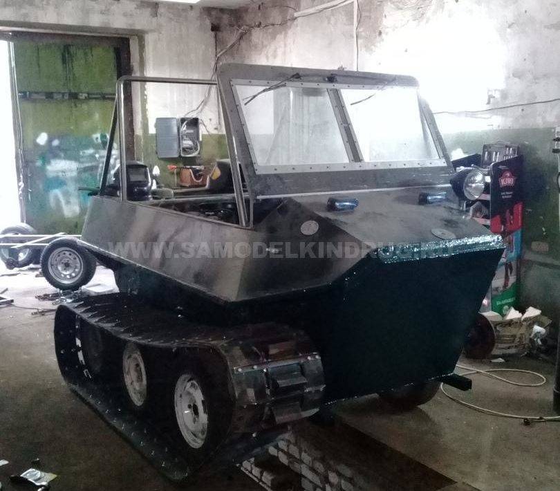 Корпус-лодка полностью герметичен за счет чего вездеход имеет возможность плавать, водоизмещение 1100 л, вес вездехода составляет 600 кг, корпус лодки сварен из трубы 40 х 20 и 20 х 20 мм, Длинна 2500 мм и ширина 1800 мм.