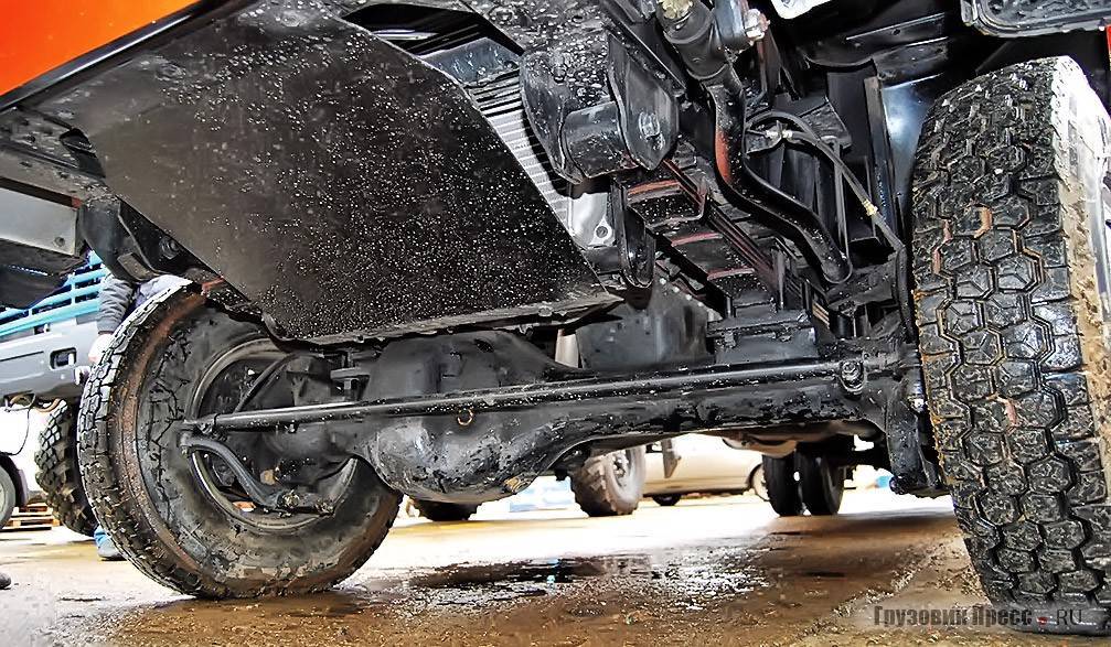 Аналогичную схему теперь имеет и доработанный в «Чайке-Сервис» Hyundai HD78, в силовой агрегат которого добавлена корейская раздаточная коробка, заведующая передачей крутящего момента только к задней или к обеим осям