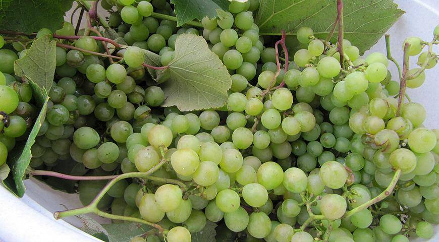 - Из среднеспелых садоводы отмечают сорта Памяти Стреляевой и Подарок ТСХА. Первый относится к столовым, вес грозди — 240 г, форма коническая. Растение не болеет грибковыми заболеваниями, ягоды плотные и сочные, вкус сладкий. Подарок ТСХА отличается среднерослыми кустами с красивыми изогнутыми лианами и светло-зелеными плодами с приятным ананасовым ароматом. Урожай едят в свежем виде или перерабатывают, сочная мякоть хороша в любом виде.