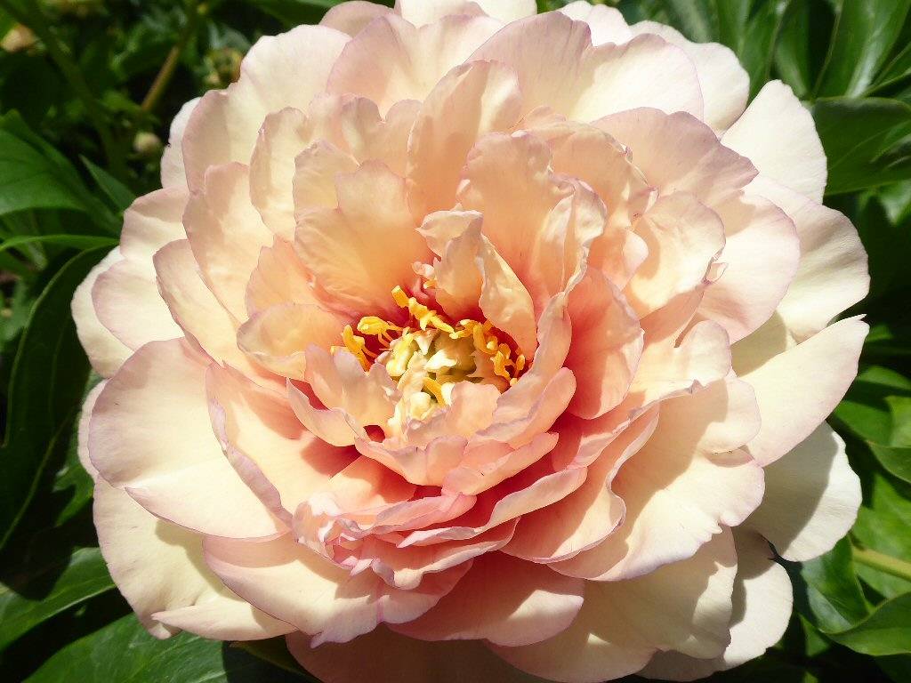 Жёлтый перламутр. Высота растения 120-130 см. Распускает в июне крупные (до 20 см в диаметре) густо махровые цветки, жемчужно-жёлтого цвета. В середине цветка можно разглядеть розоватые искорки.