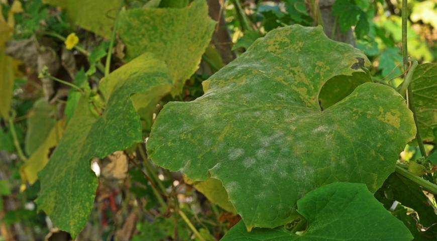 - мучнистая роса — на листьях появляется белый налет в виде пятен, похожих на муку;